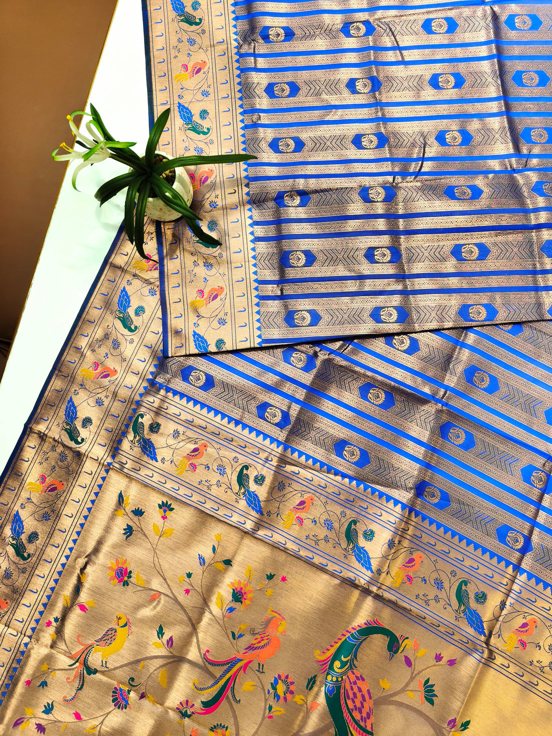 Premium Soft Paithani Silk Saree with rich zari woven pallu and zari woven border with...
