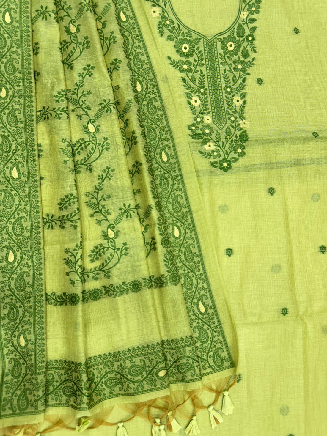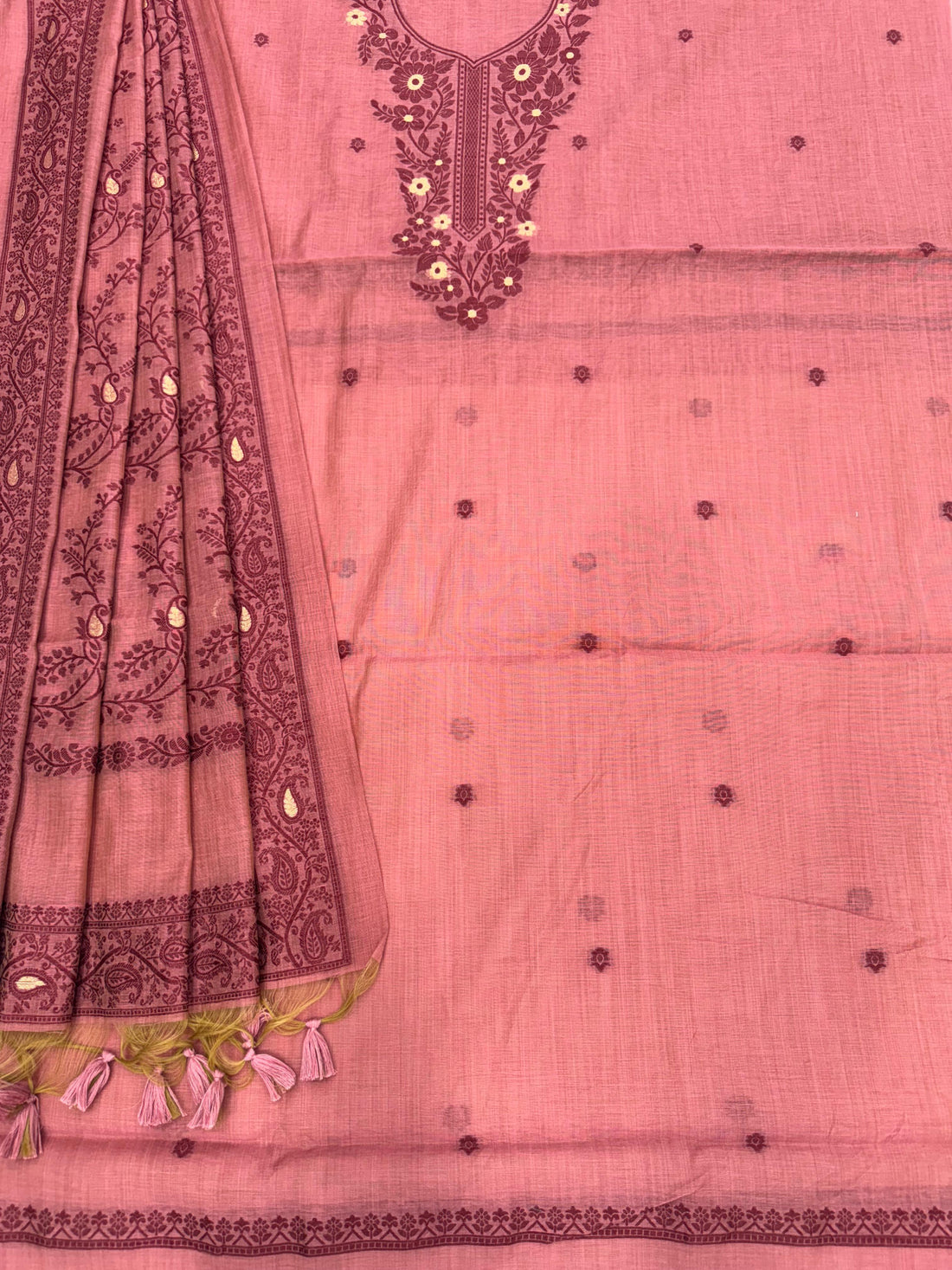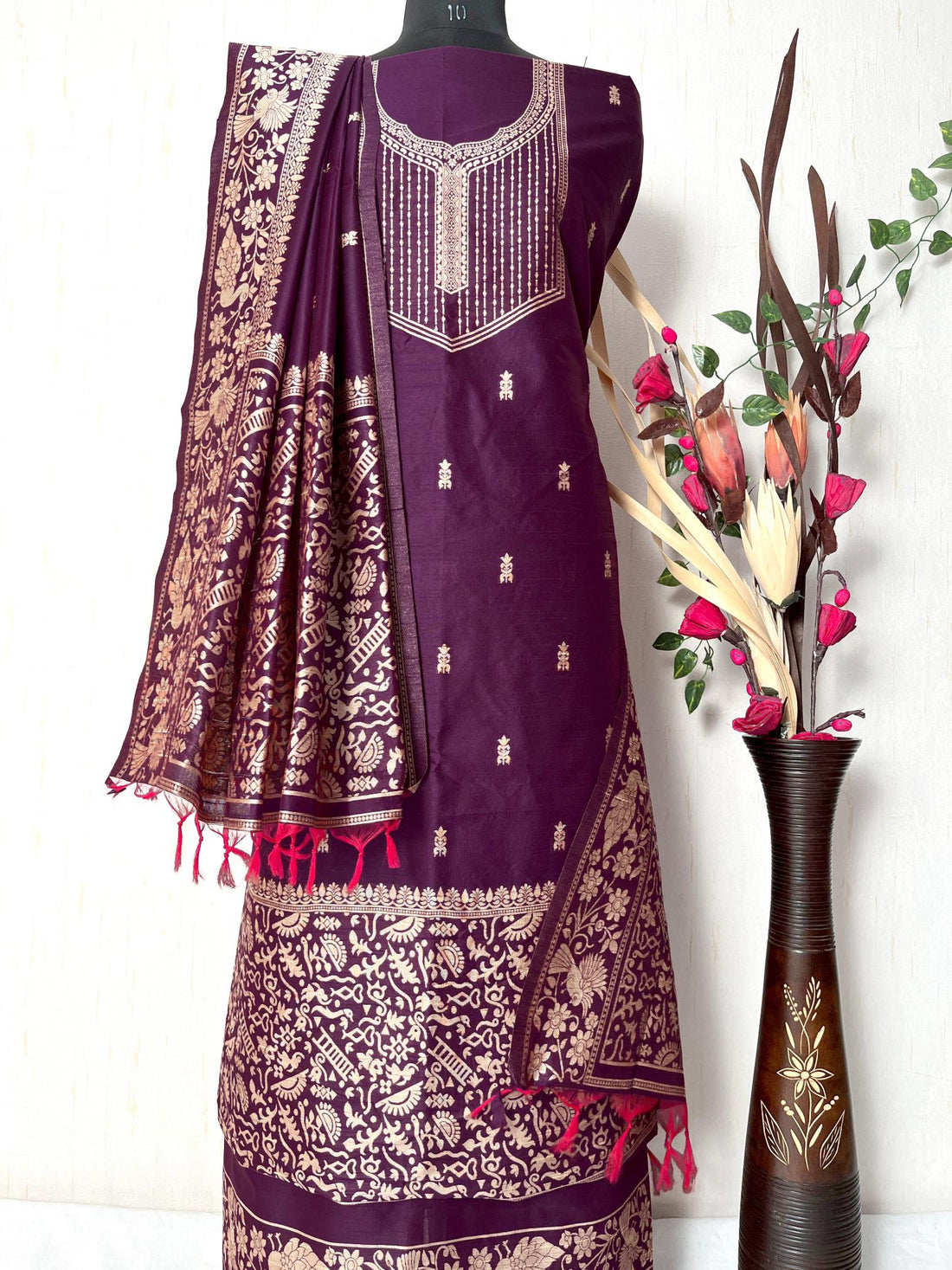 PURE SOFT MUGA COTTON SUIT WITH FLORAL TYPE WEAVING ON NECK WITH ALL OVER WEAVING...