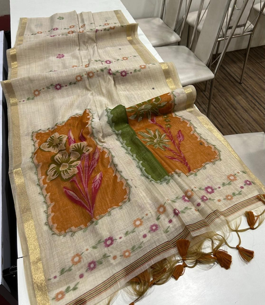 Premium soft Muga Cotton saree with classic colourfull resham weaving Jamdani pallu with very decent...