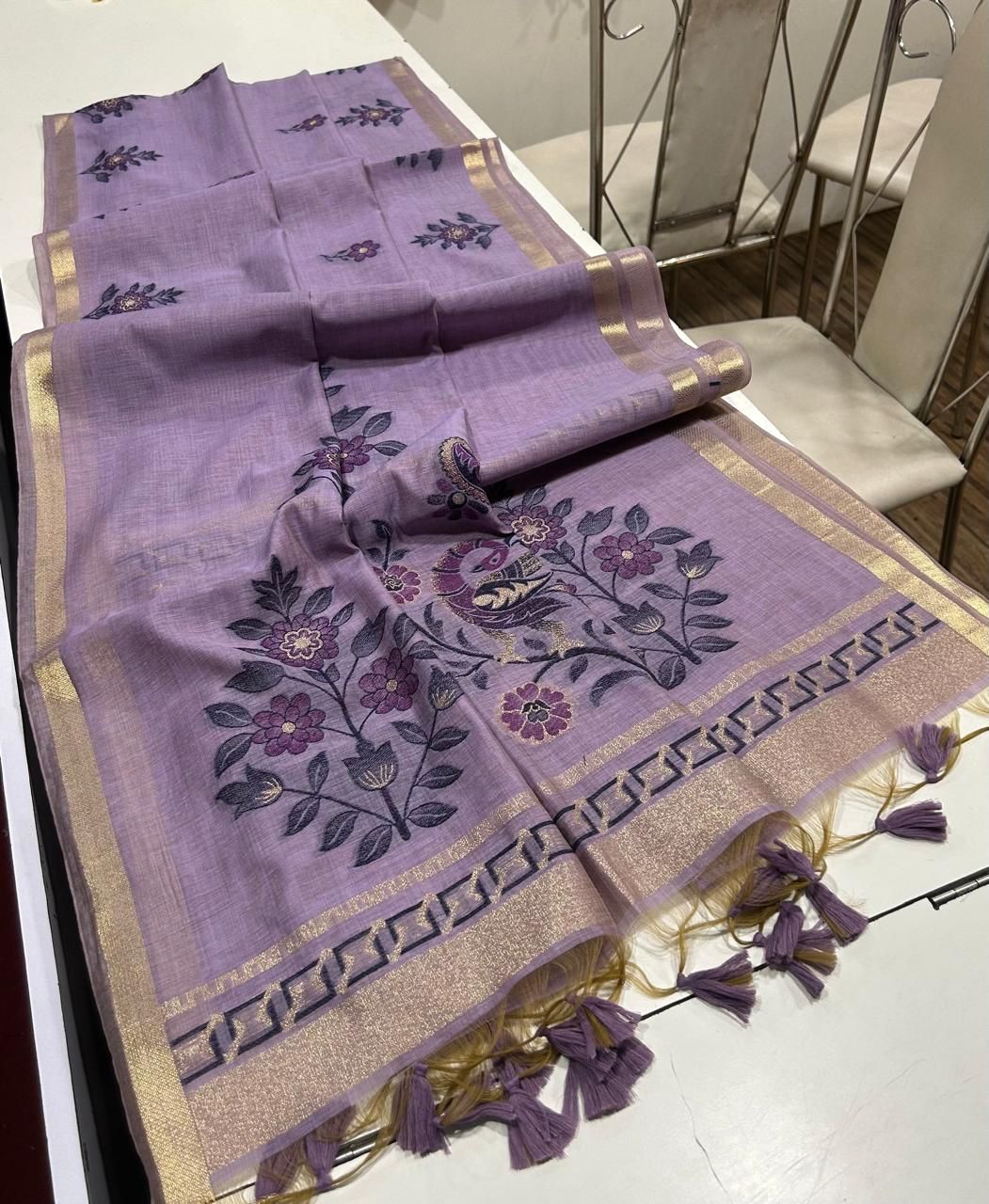 Premium soft Muga Cotton saree with classic floral and paithani type weaving pallu with very...