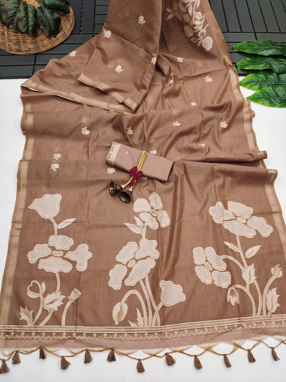 Premium Soft Muga Cotton Brown Saree