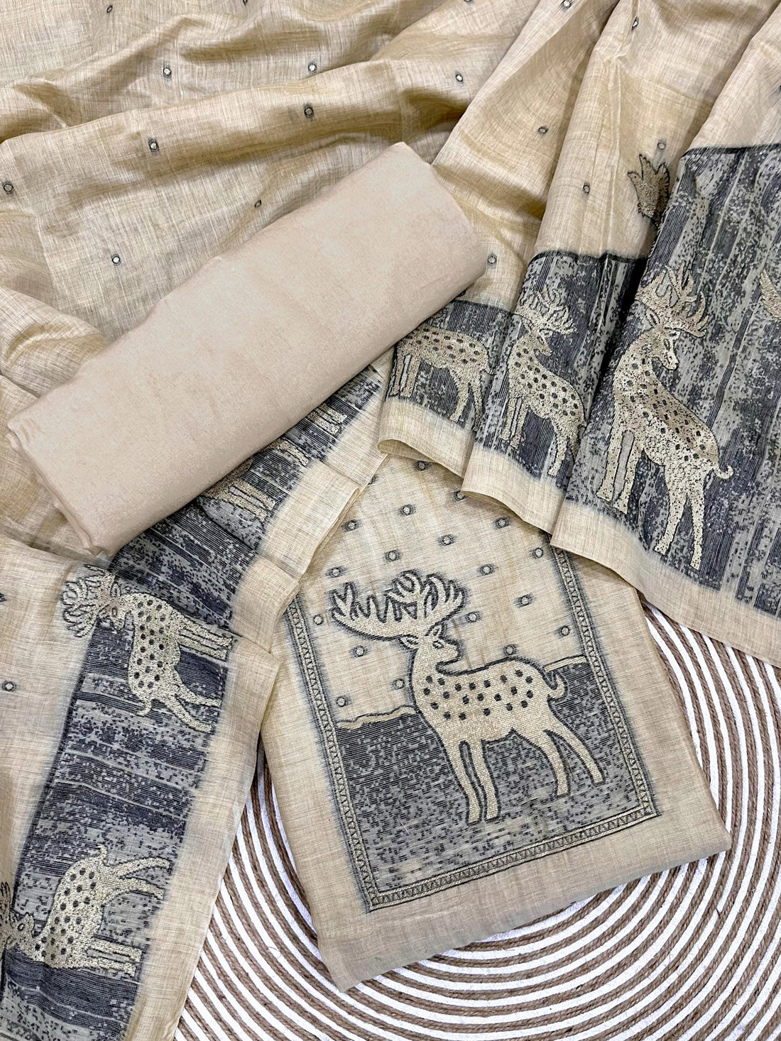 PRESENTING NEW CONCEPT UNSTITCHED DRESS SALWAR SUITS , FABRIC - PURE MUGA COTTON WITH UNIQUE...