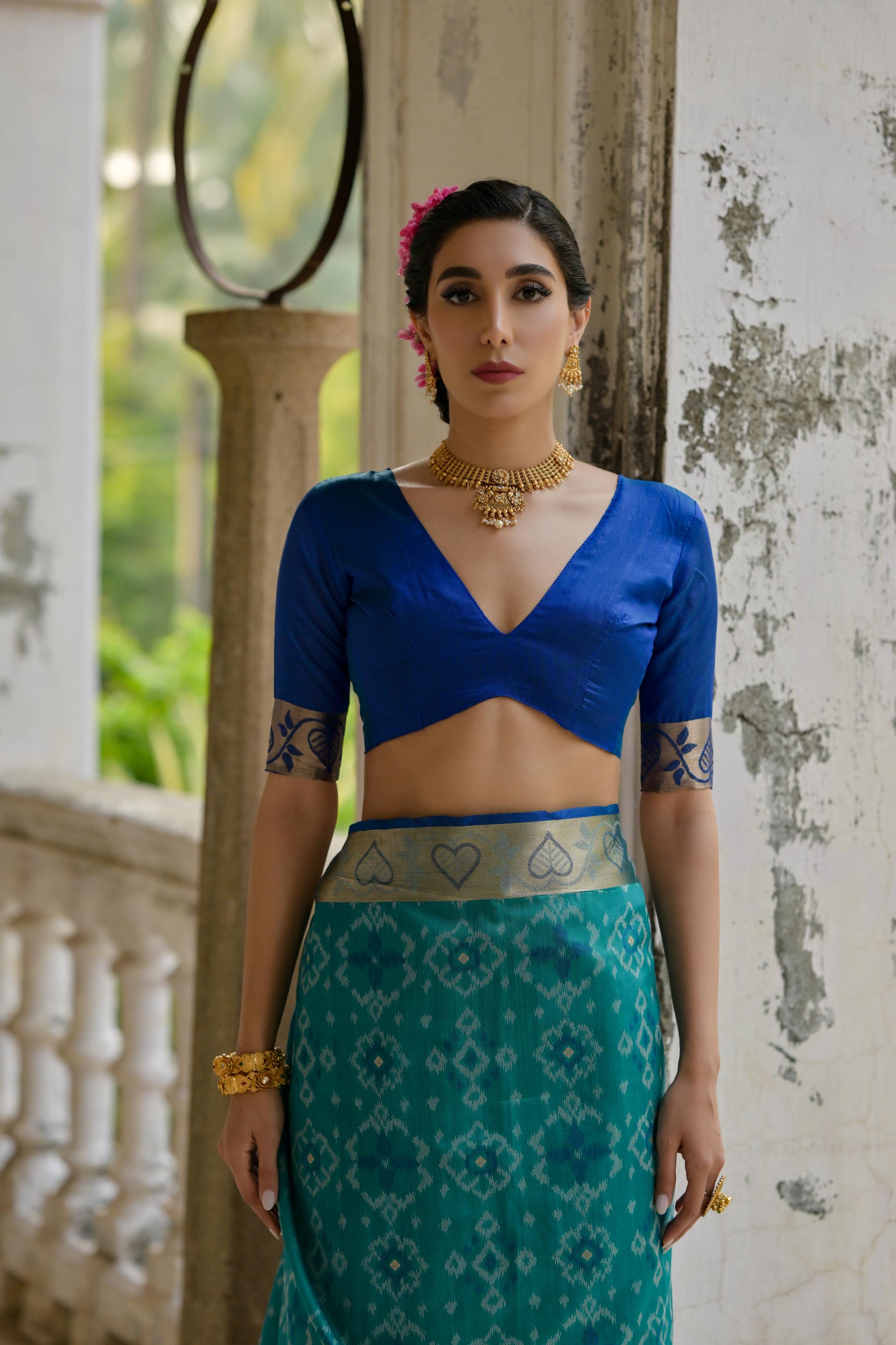 Soft Desi Raw Silk saree with pochampali ikkat concept Weaving and all over resham weaving jal and zari weaving border with traditional pallu and fancy tassels with contrast blouse piece