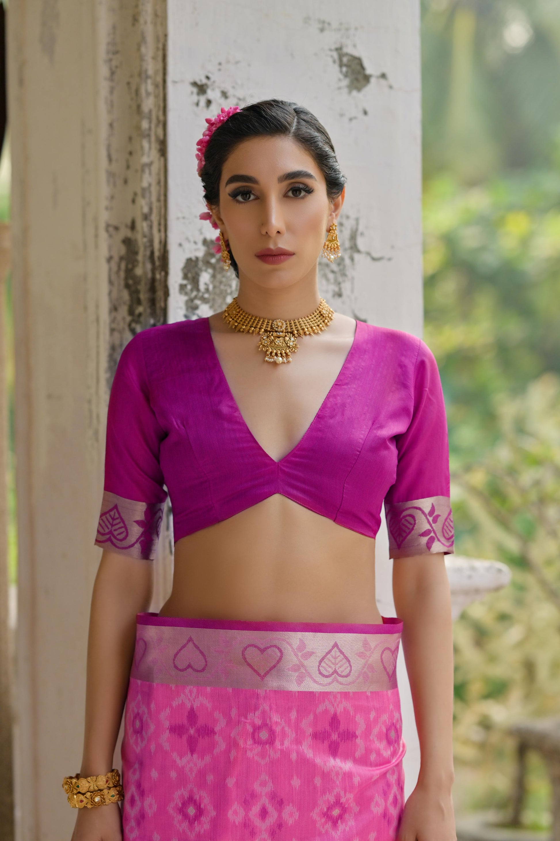 Soft Desi Raw Silk saree with pochampali ikkat concept Weaving and all over resham weaving jal and zari weaving border with traditional pallu and fancy tassels with contrast blouse piece