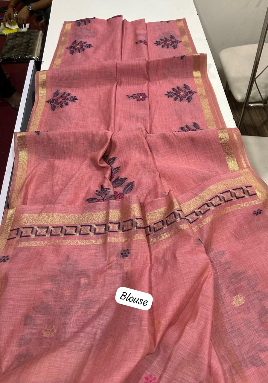 Premium soft Muga Cotton Pink saree