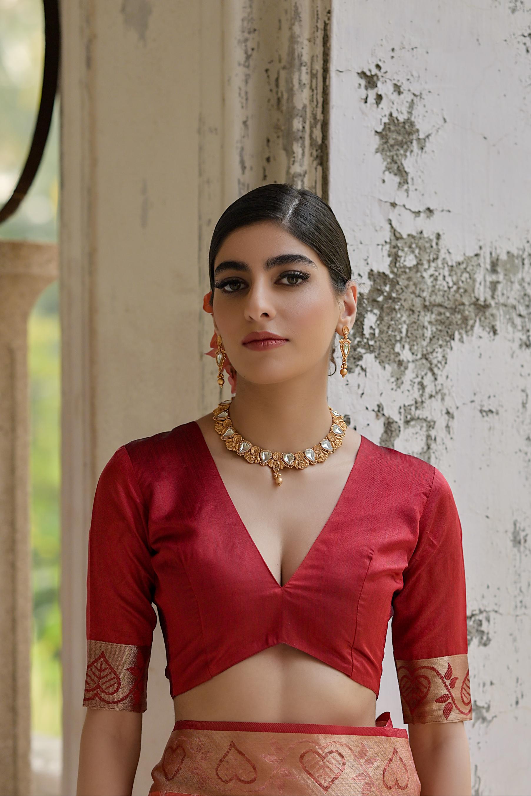 Soft Desi Raw Silk Beige merun saree