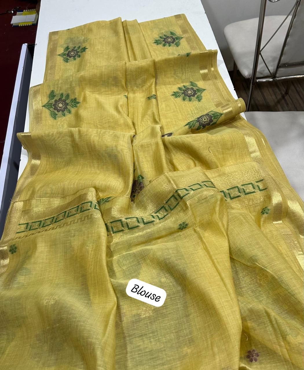 Premium soft Muga Cotton Yellow saree