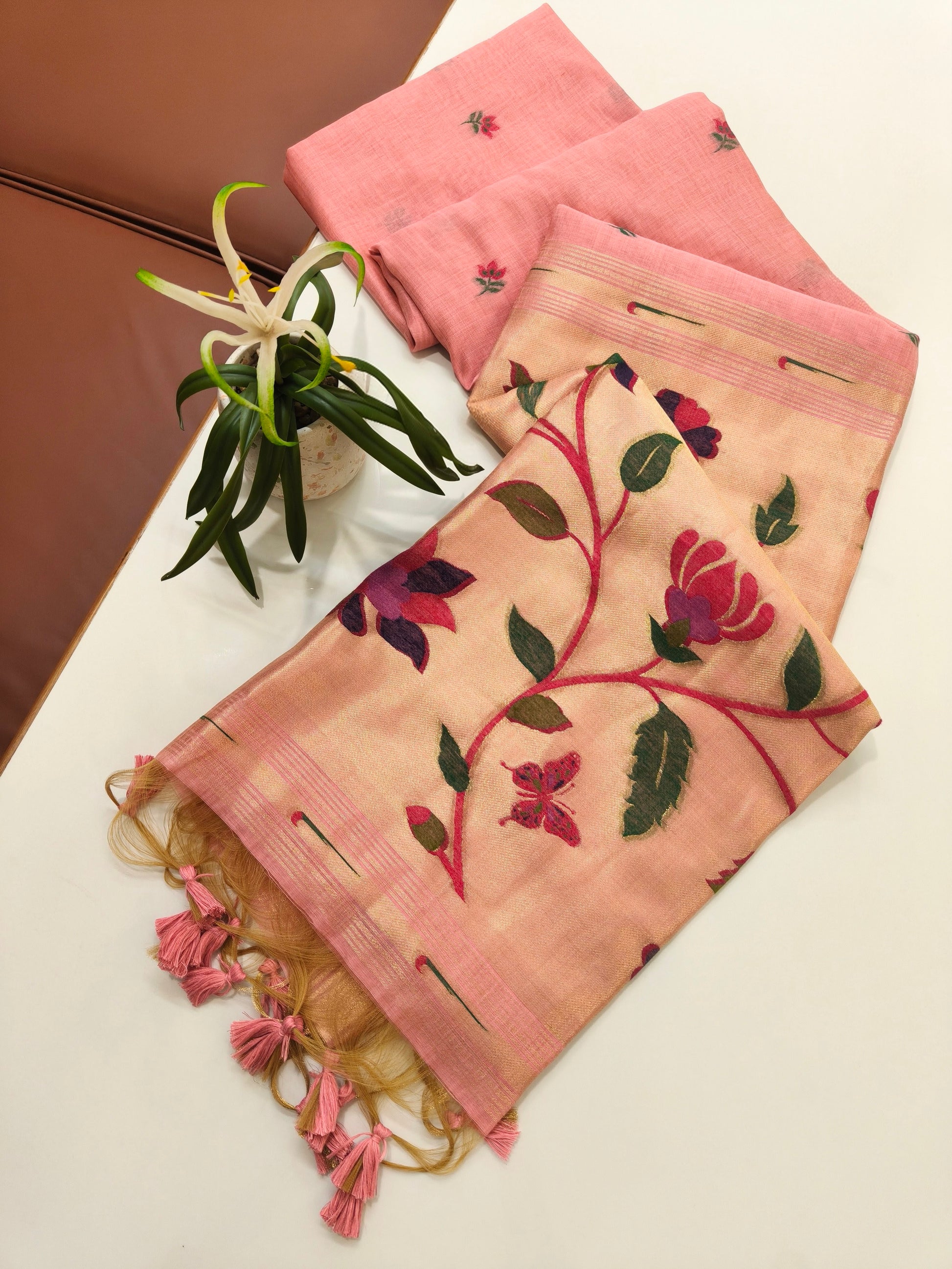 Premium Soft moga cotton paithani Pink sare