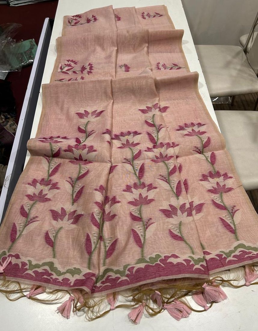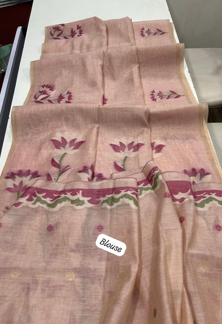 Premium soft Muga Cotton saree with classic colourfull resham weaving Jamdani pallu with very decent colour touchup and all over weaving buttias with fancy tassels and running blouse piece