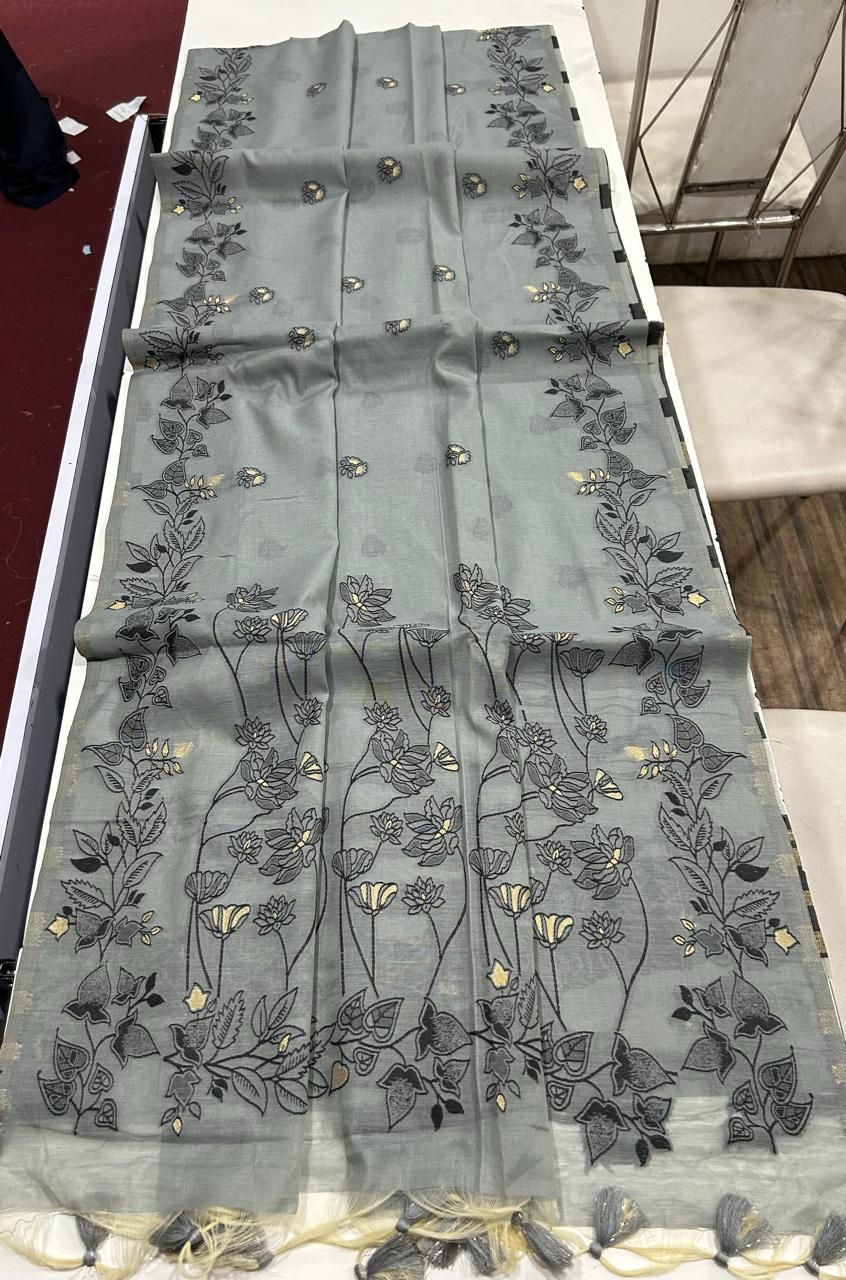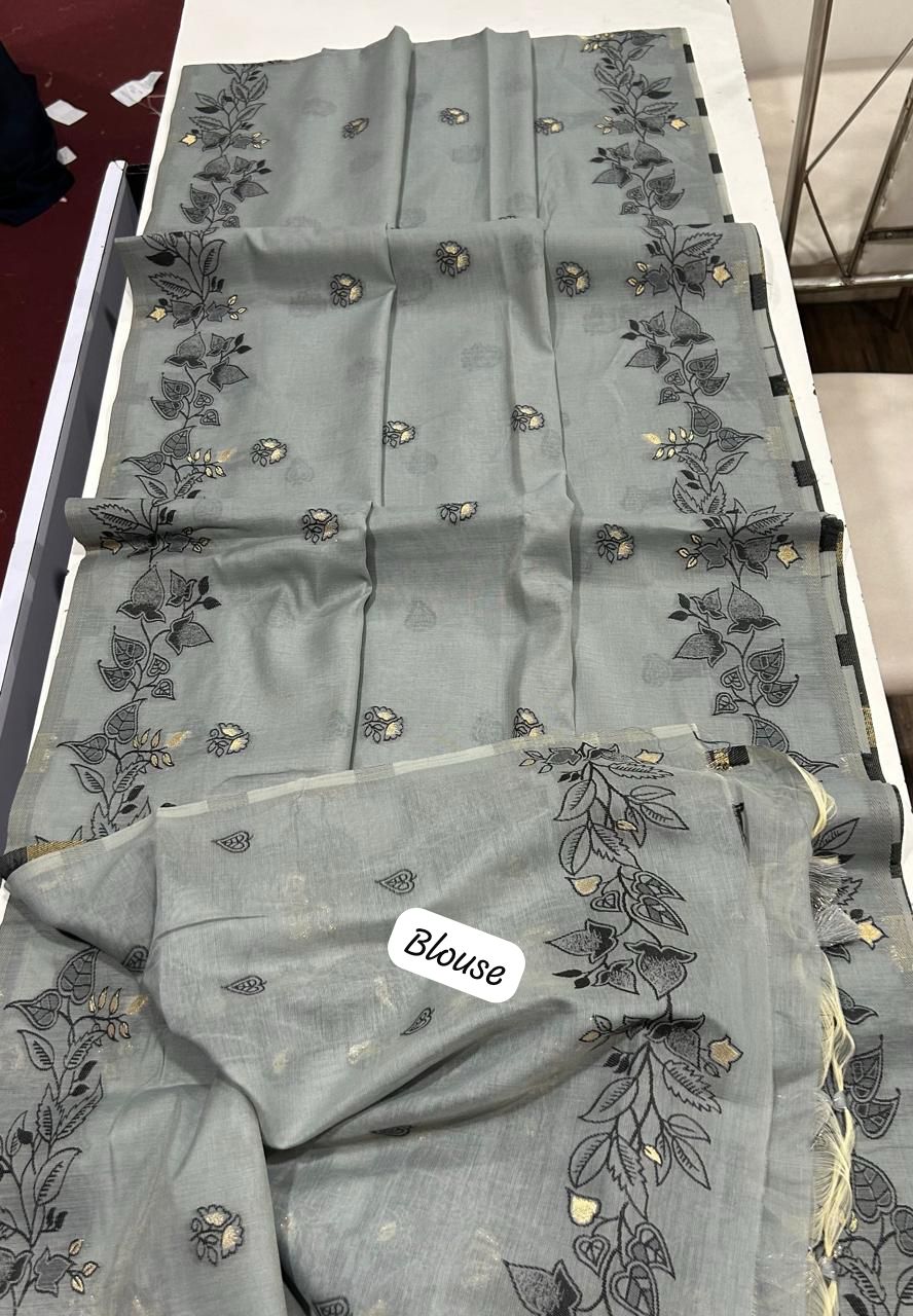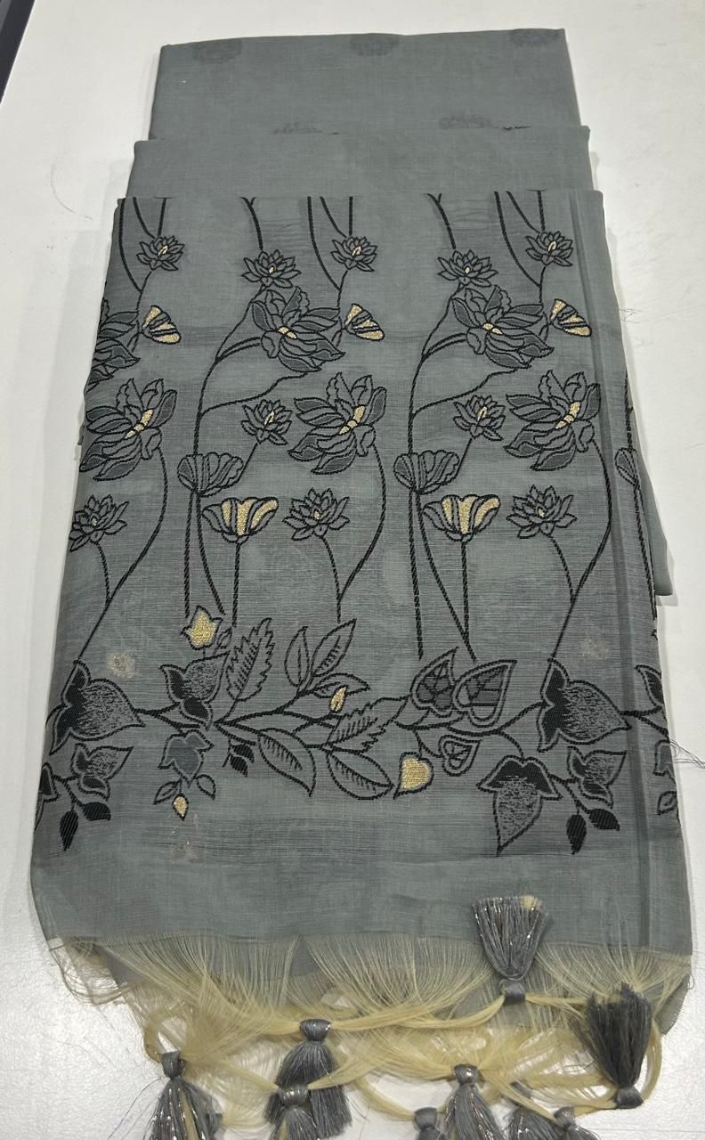 PREMIUM SOFT CHANDERI COTTON GREY SAREE