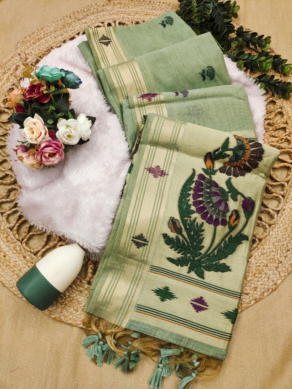 | Premium Soft moga cotton paithani saree with classic resham weaving paithani pallu and zari weaving border with all over weaving butties and running blouse piece | |||||||||||||