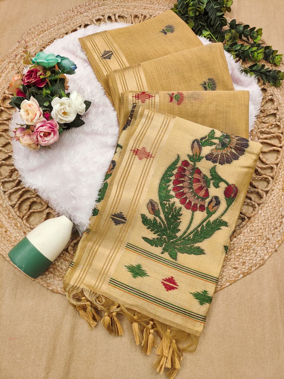 | Premium Soft moga cotton paithani saree with classic resham weaving paithani pallu and zari weaving border with all over weaving butties and running blouse piece | |||||||||||||
