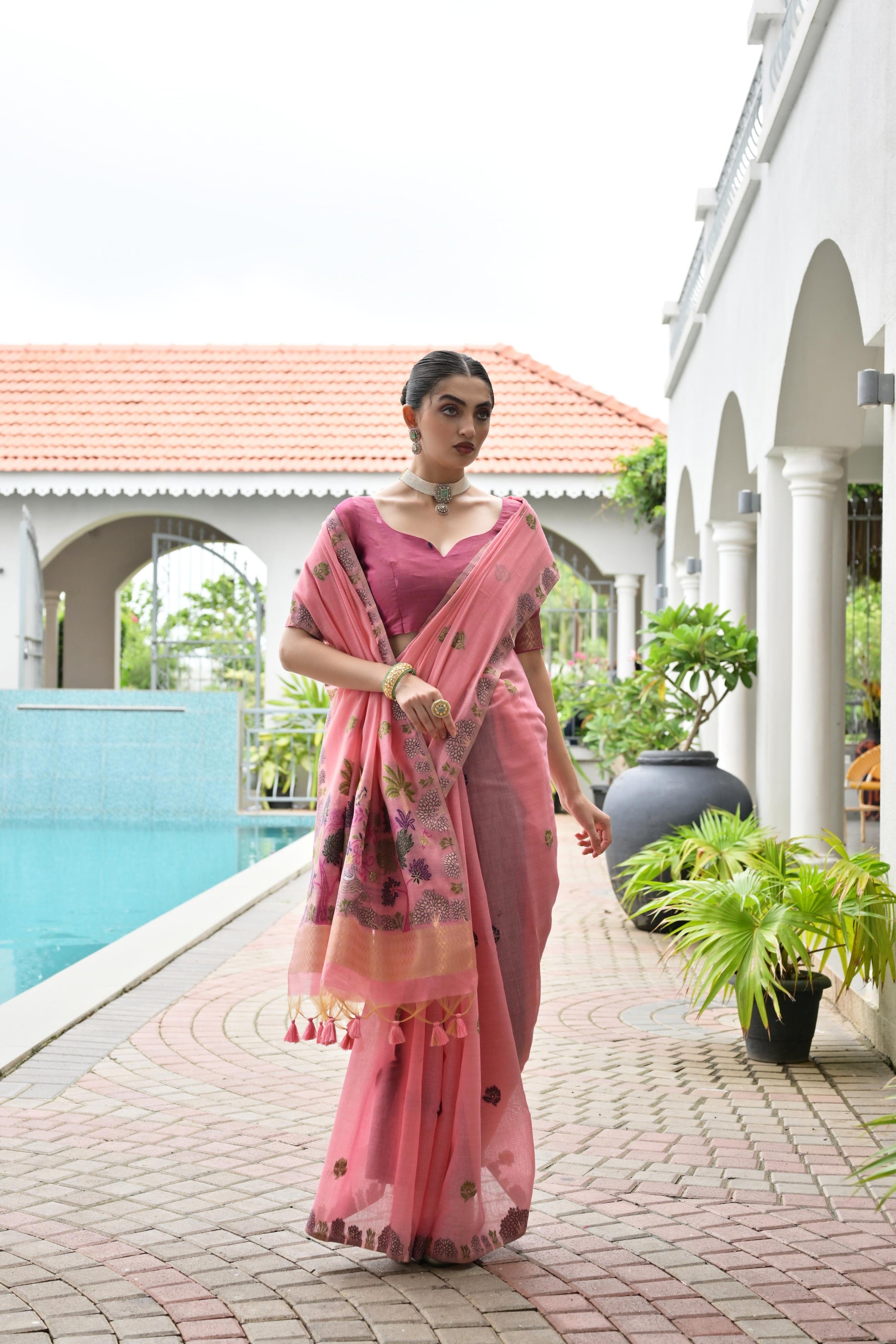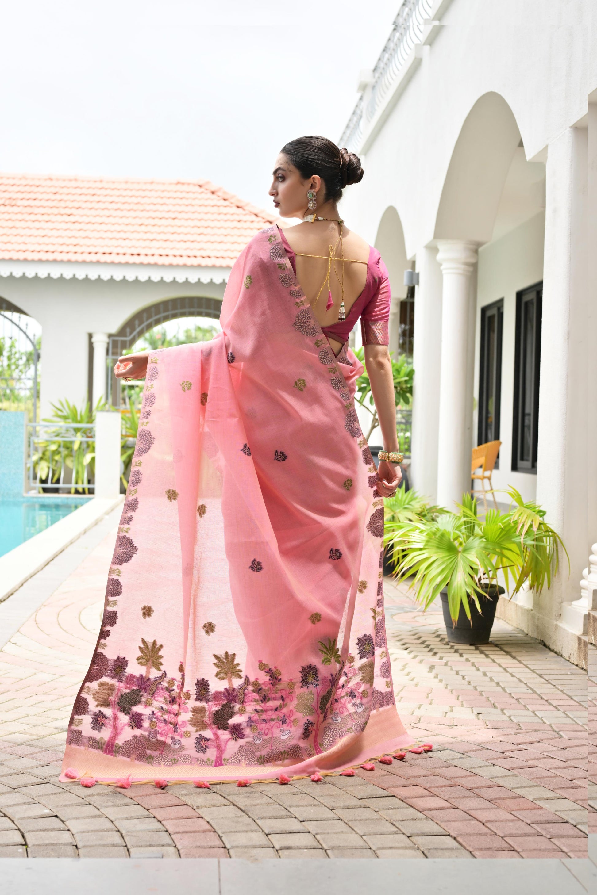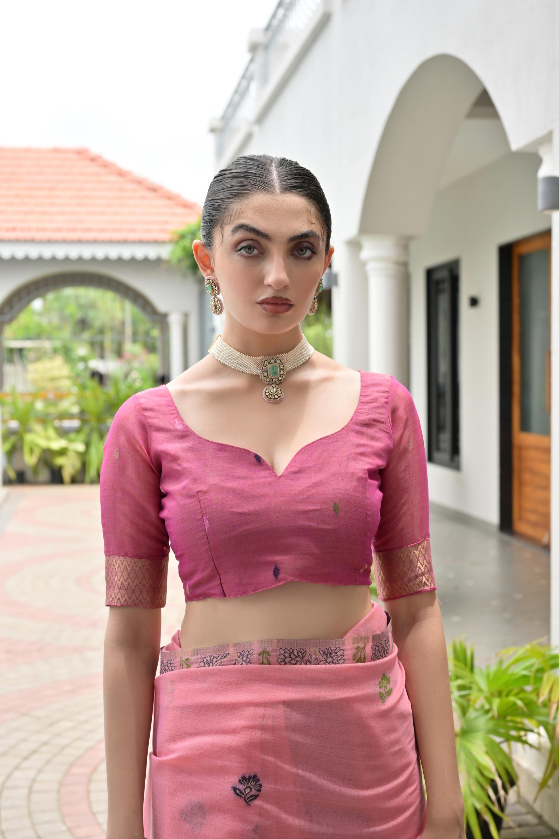 PREMIUM SOFT CHANDERI COTTON PINK SAREE
