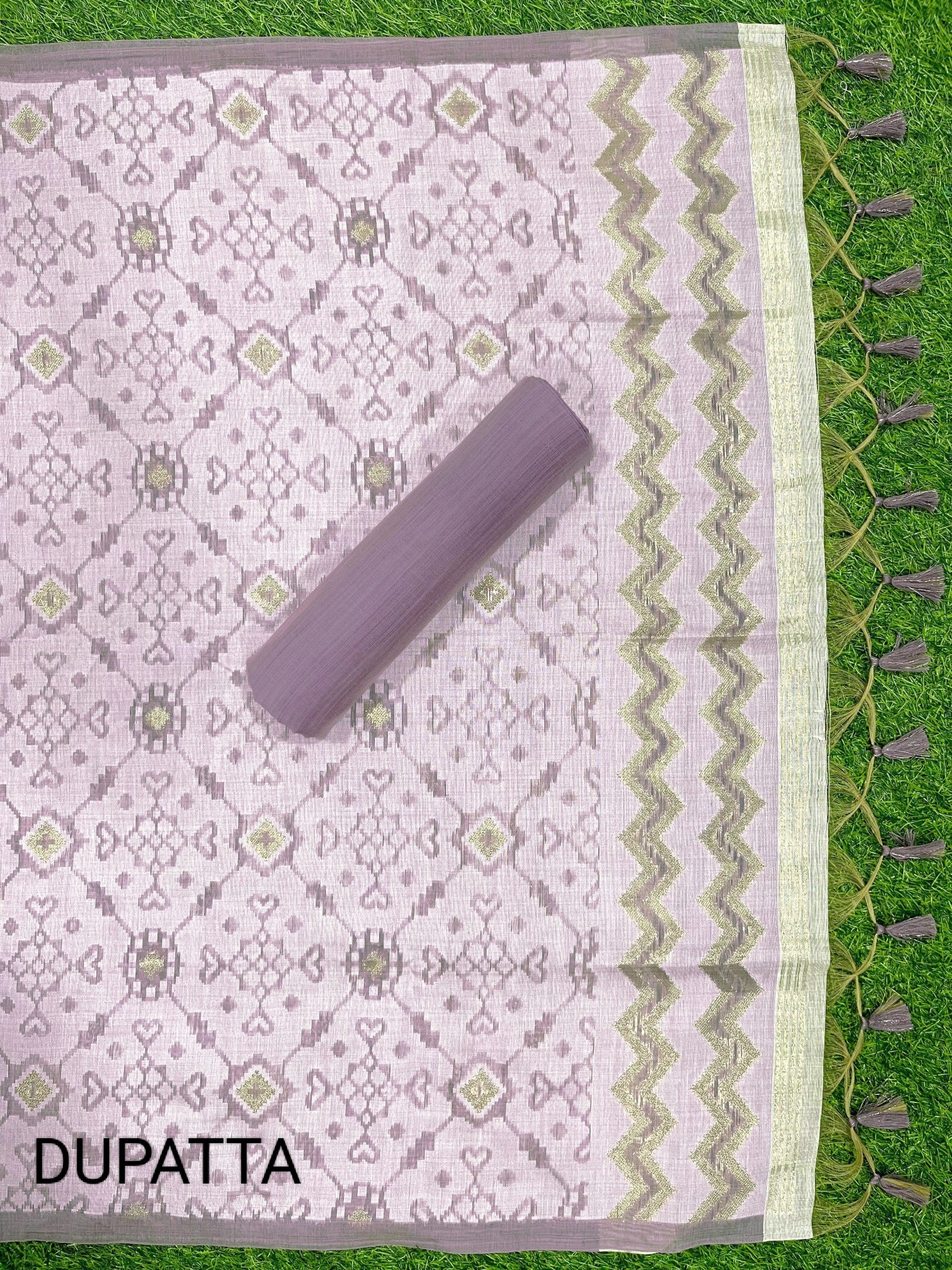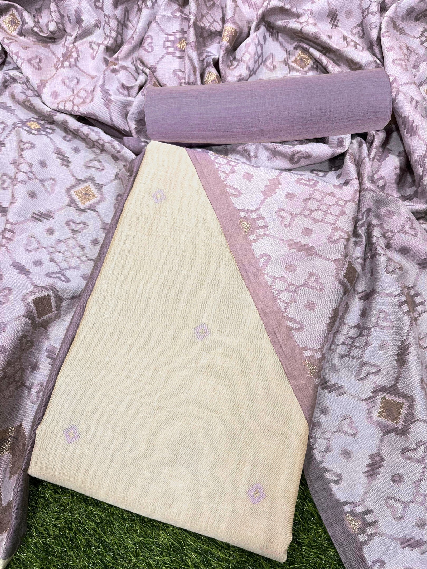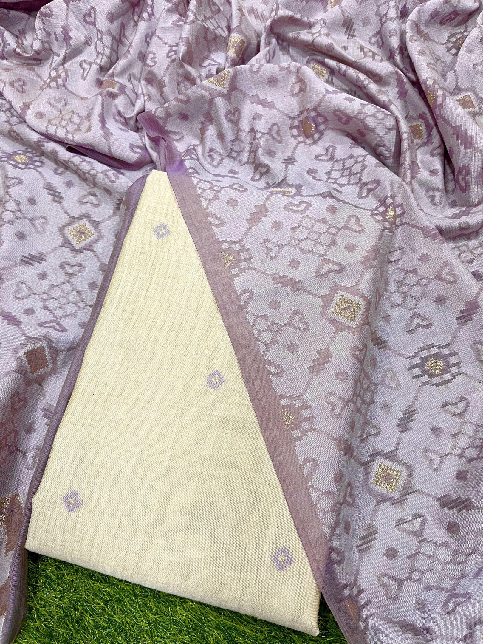 PRESENTING NEW CONCEPT UNSTITCHED DRESS SALWAR SUITS , FABRIC - PURE MUGA COTTON WITH UNIQUE TEMPLE WEAVING ON BODY WITH CONTRAST DUPATTA AND BOTTOM, DETAILS : CONTAIN 3 PIS SET , 1)UNSTITCH TOP LENGHT 2.5 METER , 2)UNSTITCH BOTTOM 2.3 METER, 3)PATOLA STYLR DUPATTA 2.25 MTR WITH FANCY BORDER