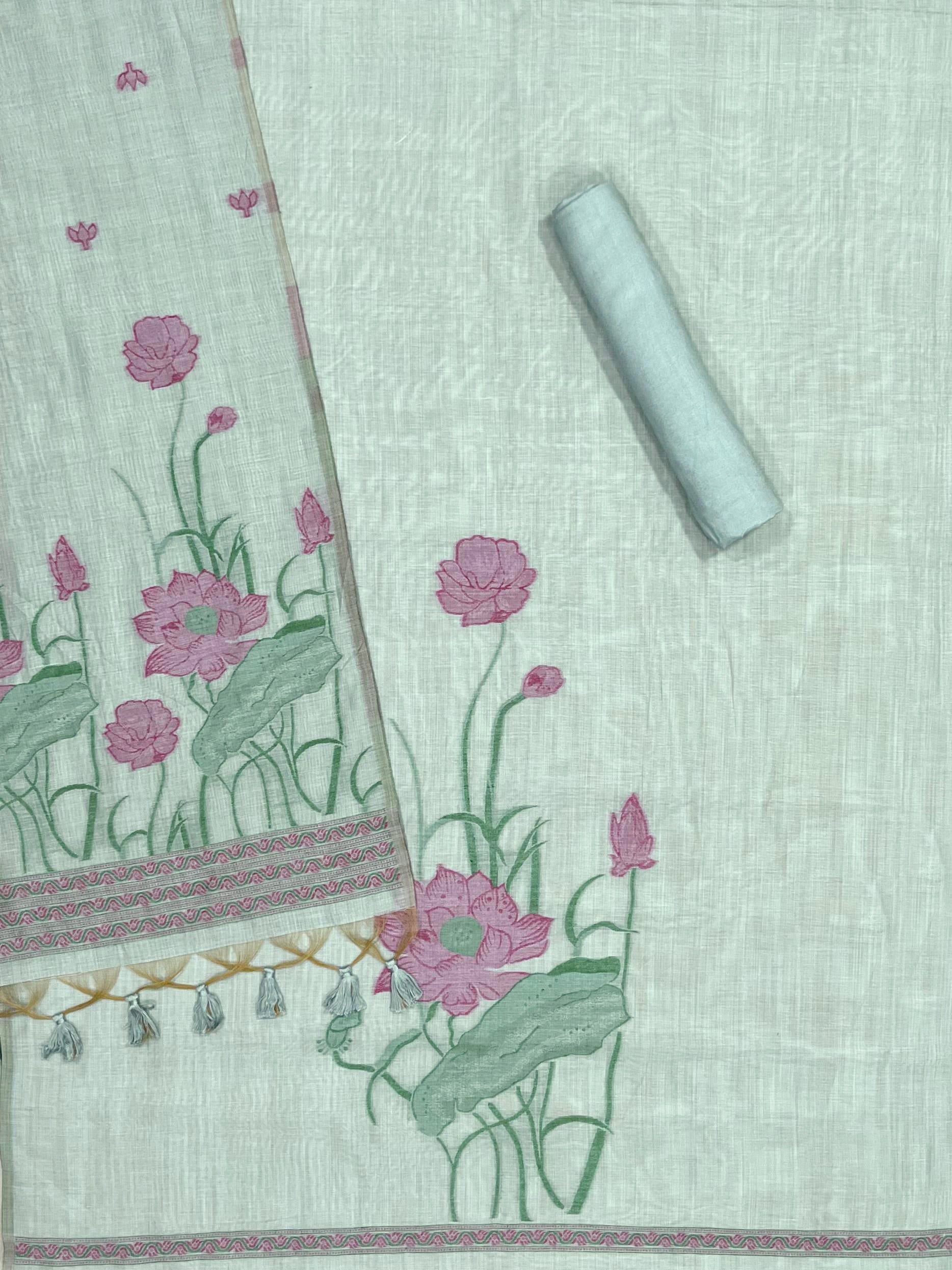 PRESENTING NEW CONCEPT UNSTITCHED DRESS SALWAR SUITS , FABRIC - PURE MUGA SILK WITH UNIQUE FLORAL WEAVING ON BODY WITH CONTRAST DUPATTA AND BOTTOM, DETAILS : CONTAIN 3 PIS SET , 1)UNSTITCH TOP LENGHT 2.5 METER , 2)UNSTITCH BOTTOM 2.5 METER, 3)DUPATTA 2.25 MTR WITH FANCY BORDER