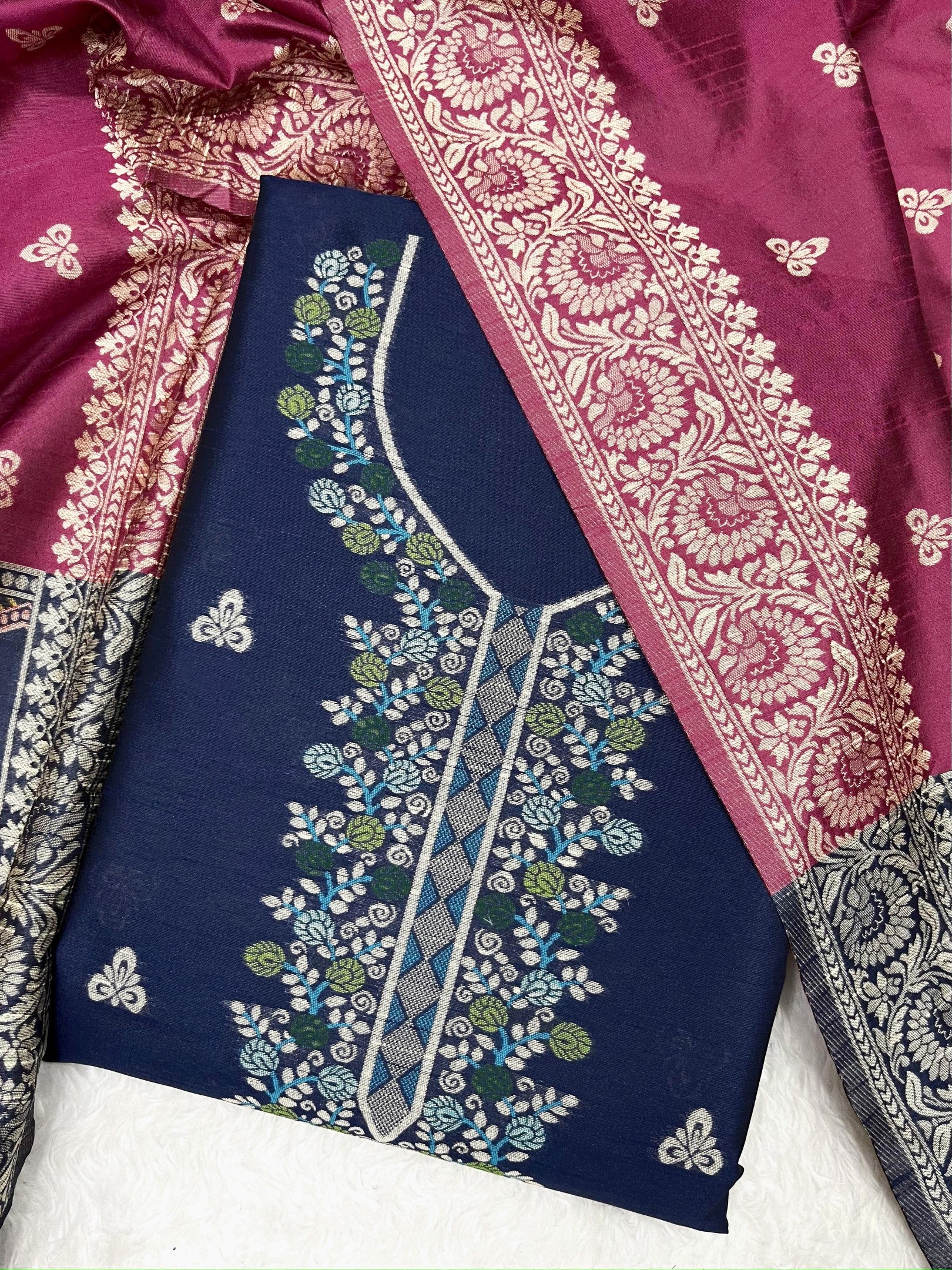 Presenting New Warli Concept Unstitched Navy Blue Suit