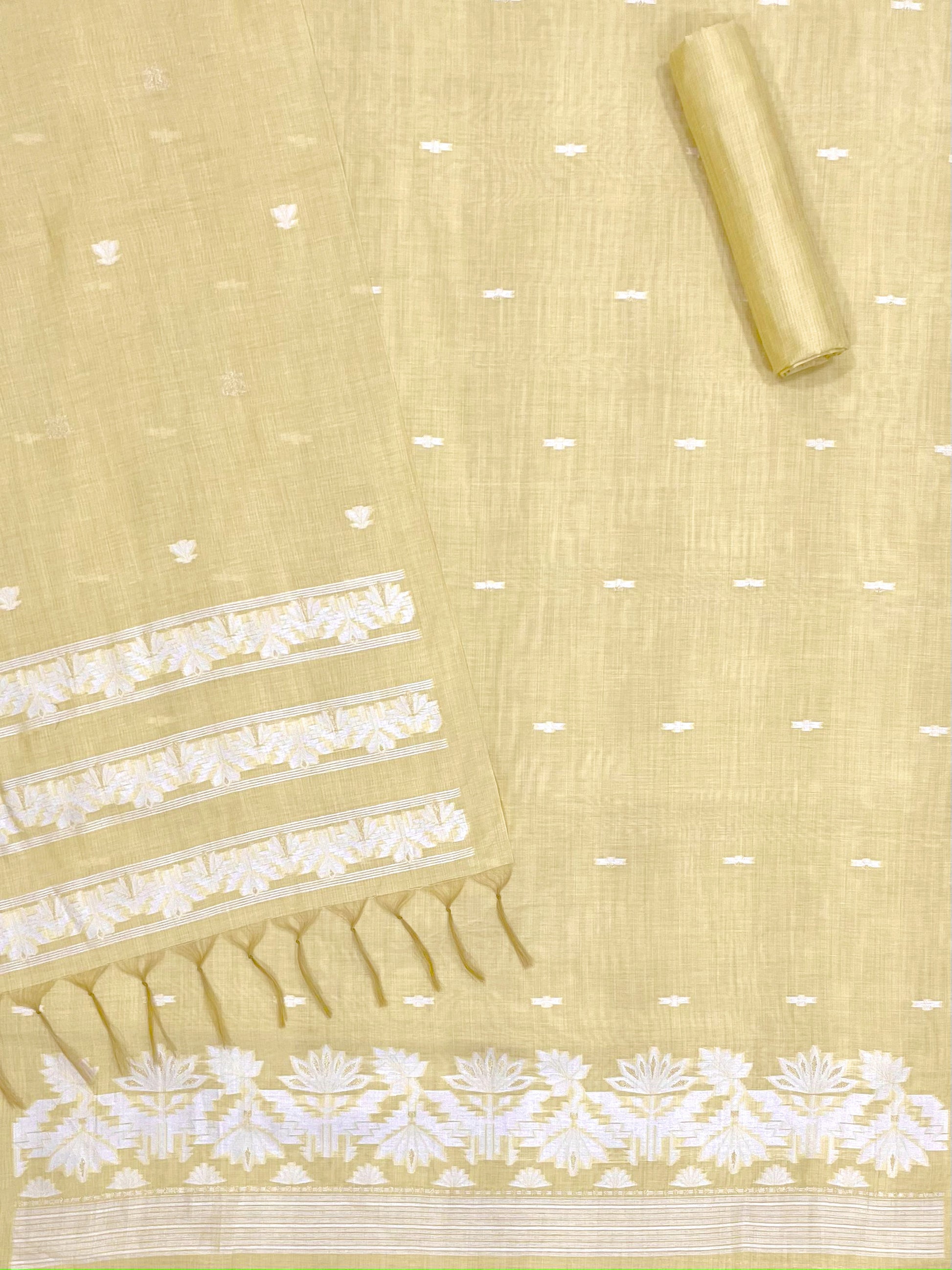 PURE LINEN COTTON TOP WITH UNIQUE EMBROIDERED ON BODY WITH PURE MUGA COTTON WEAVING DUPATTA AND BOTTOM