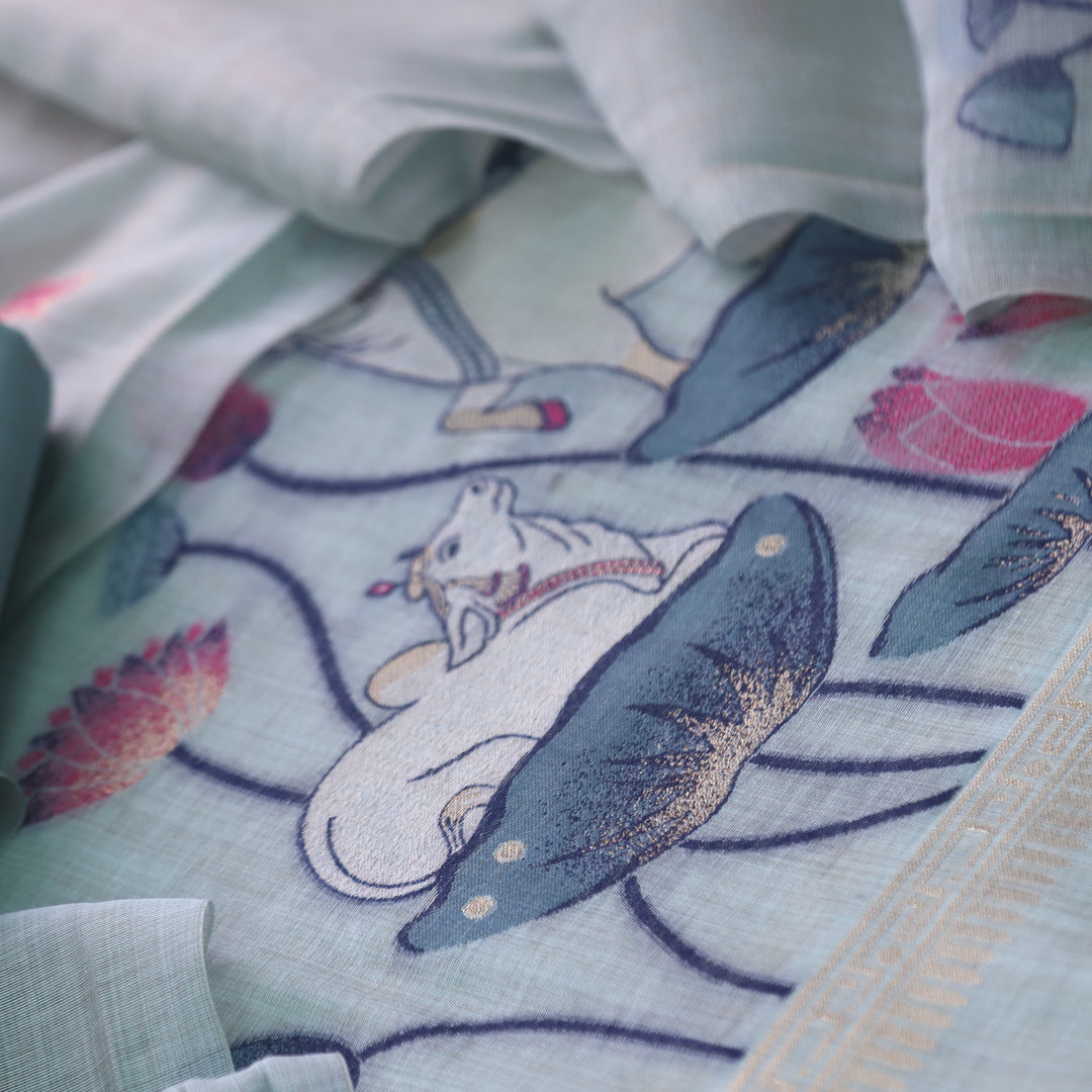 Pure Soft Muga Cotton Lhite Blue Suit
