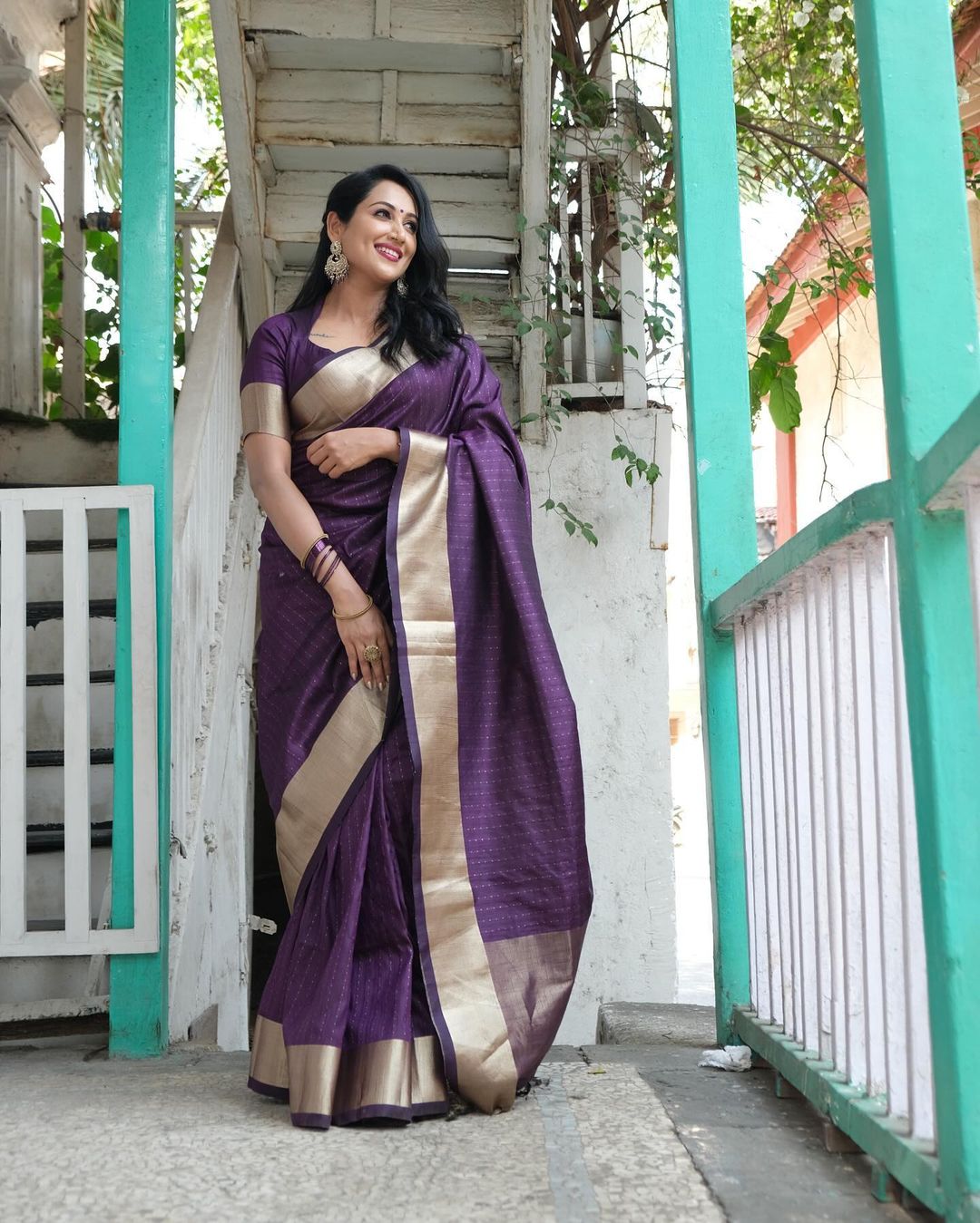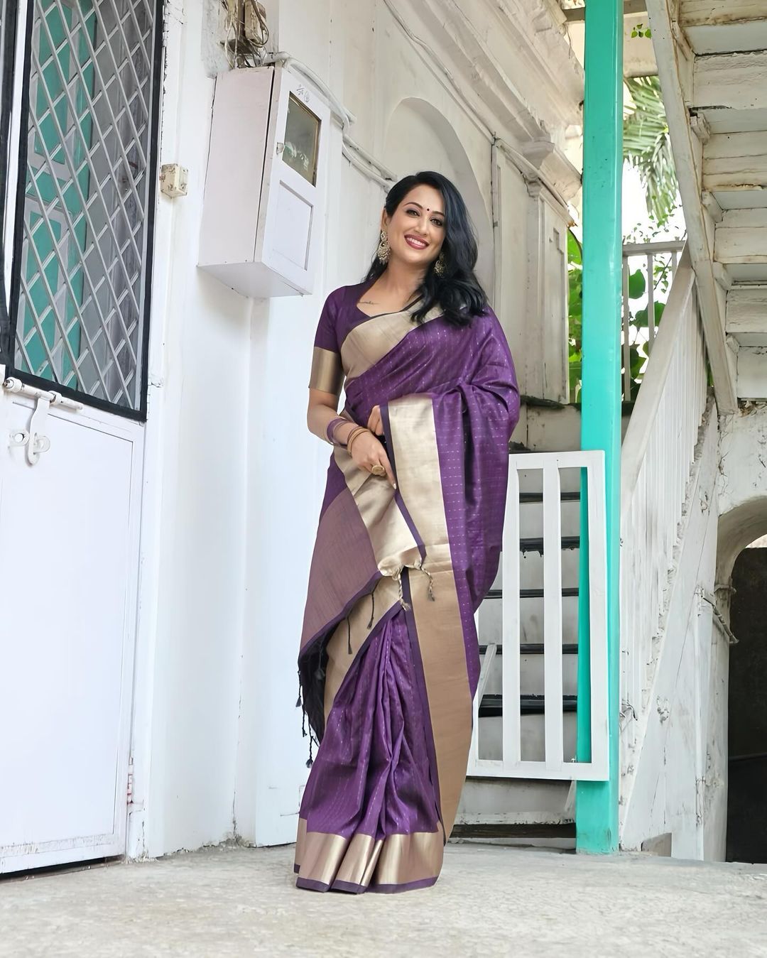 Soft Banarasi Raw Silk Purple Saree With Blouse Piece For Women