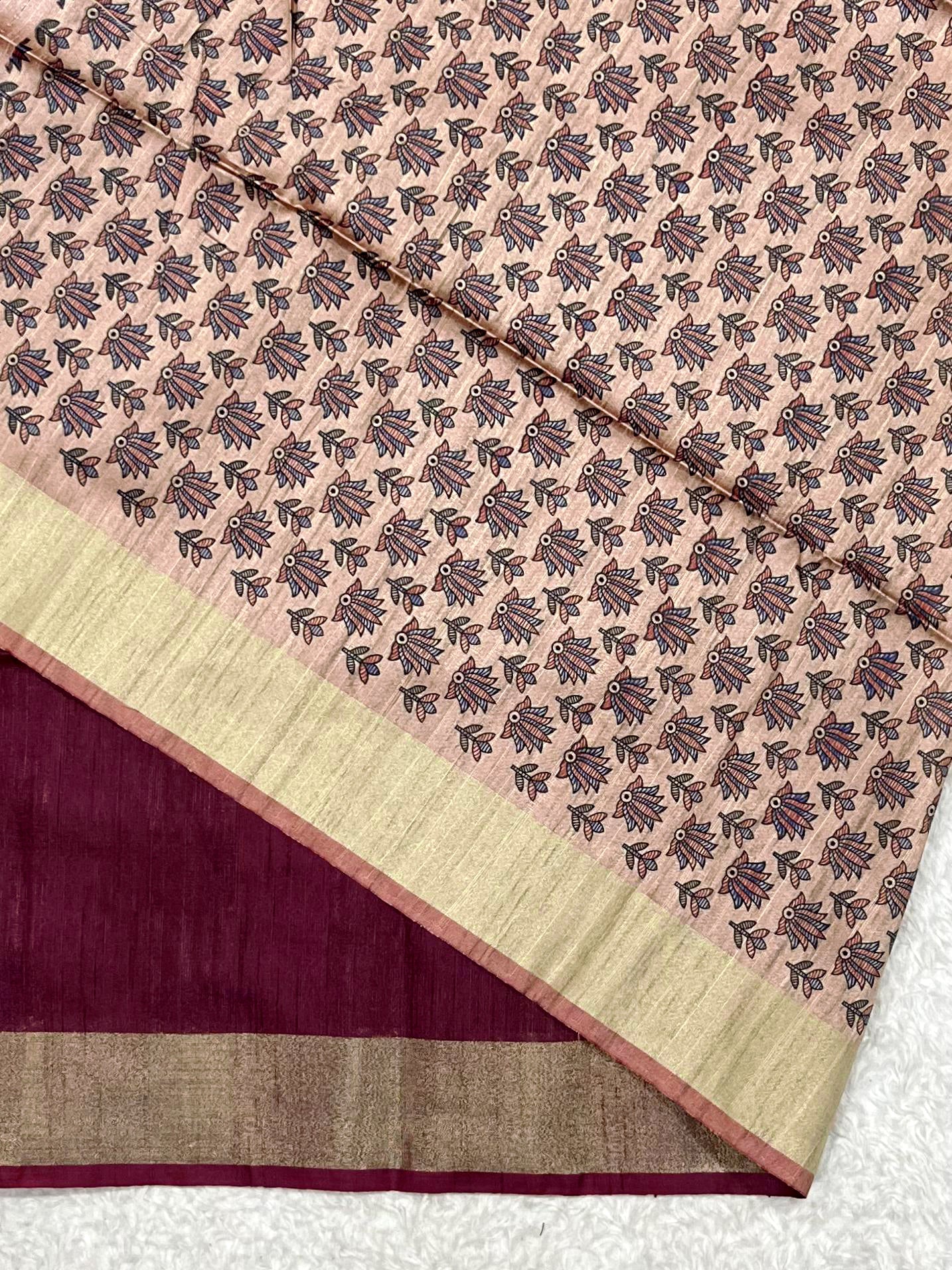Soft Khadi Raw silk saree with beautiful madhubani print on pallu and zari weaving border with classic weaving texture on all over the body and printed blouse piec