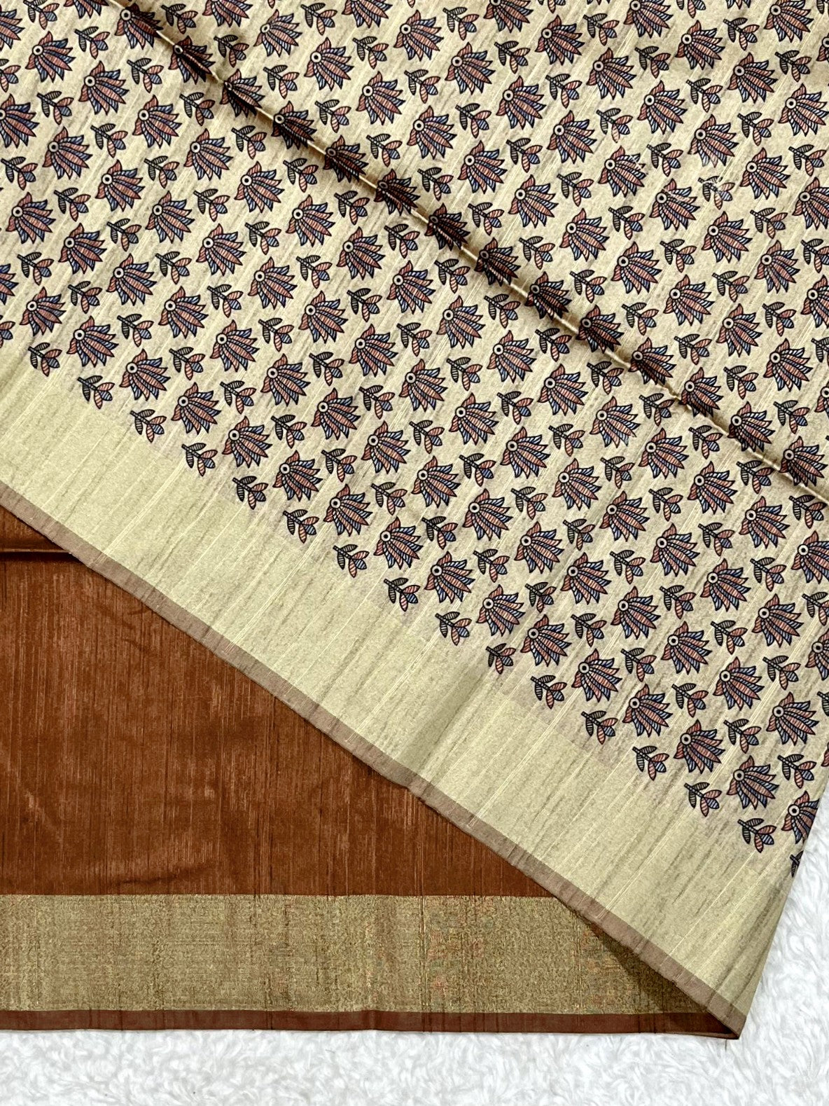 Soft Khadi Raw silk saree with beautiful madhubani print on pallu and zari weaving border with classic weaving texture on all over the body and printed blouse piec