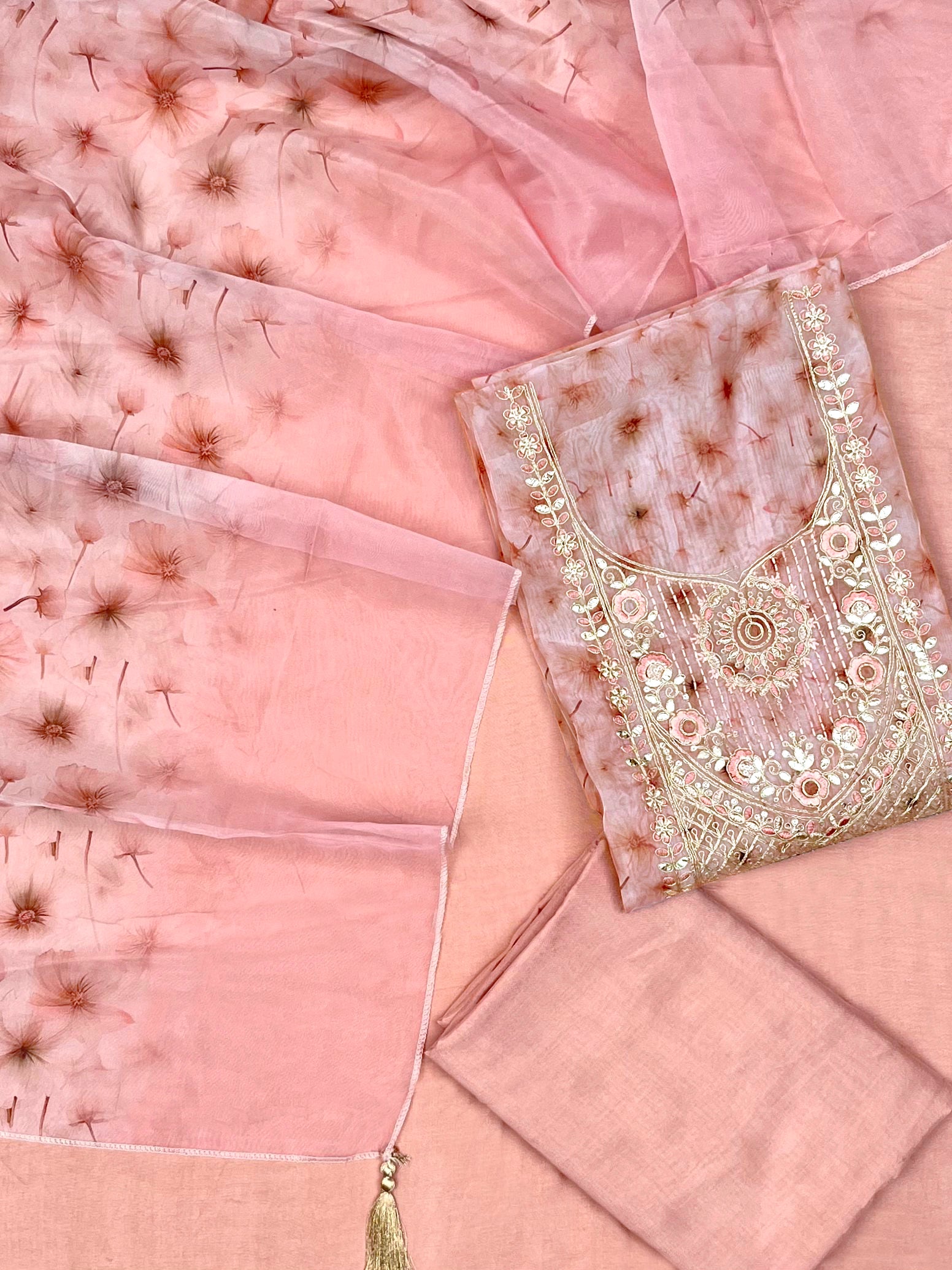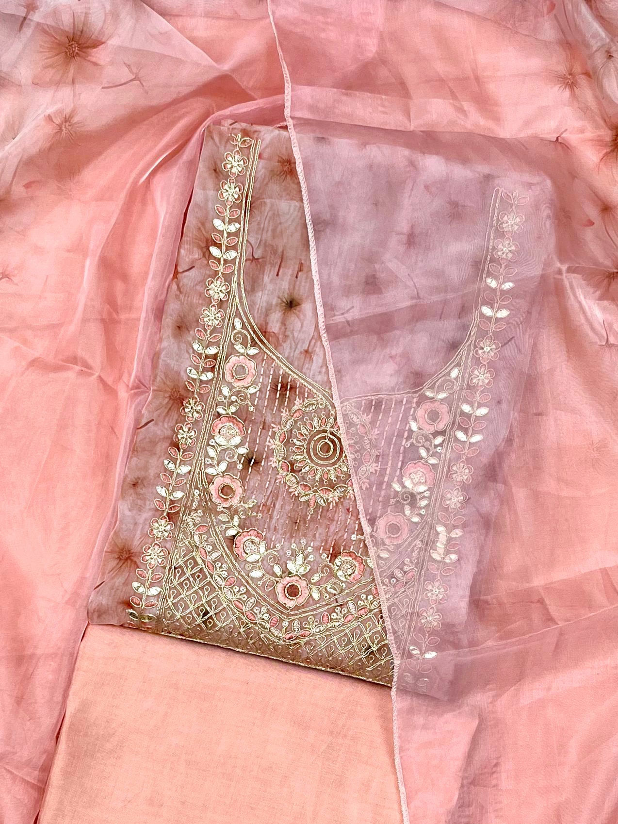 Soft Organza Dori And Gota Pati Baby Pink Suit